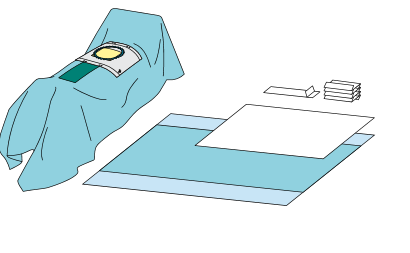 | Состав комплекта | пеленка для новорожденного / простыня для кесарева сечения / покрытие стола / клейкая лента операционная / полотенца |